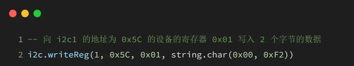 local result = i2c.writeReg(id, addr, reg, data, stop)