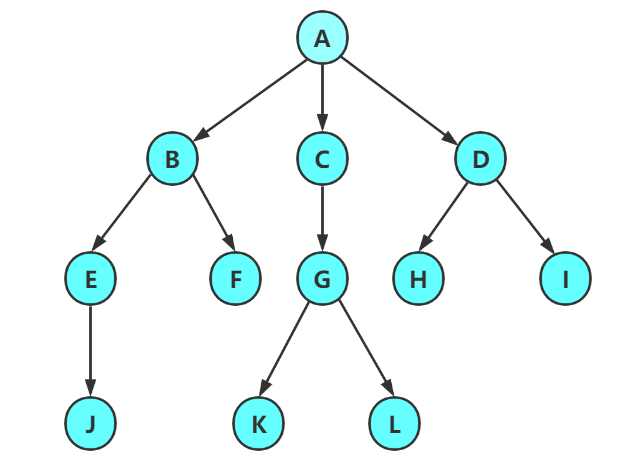 - 子孙:以某结点为根的子树中任一结点都称为该结点的子孙。如上图:所有结点都是A的子孙