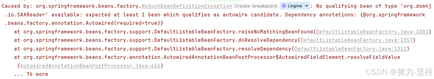 Bean对象需要注入IOC容器,错误提示如下: