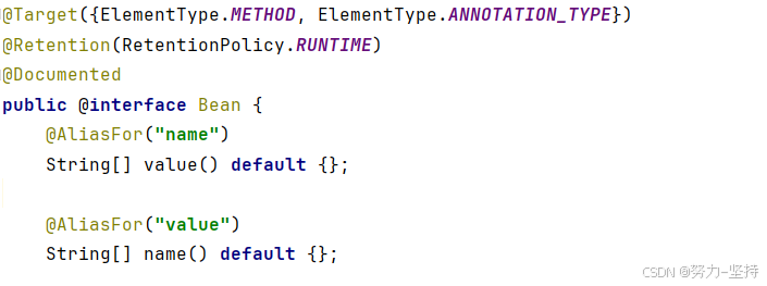 通过@Bean注解的name或value属性可以声明bean的名称,如果不指定,默认bean的名称就是方法名。