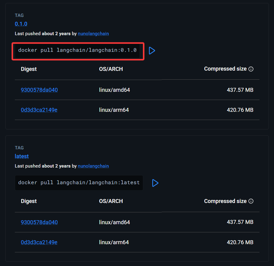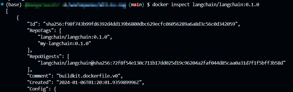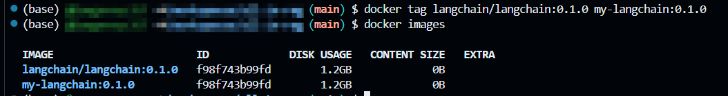 例如,使用langchain/langchain:0.1.0镜像构建容器,指定容器名称为sweety_cake。