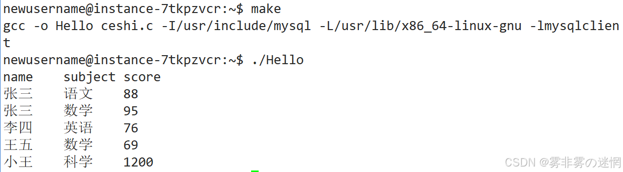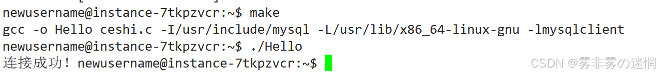 // 告诉头文件位置 告诉库位置 告诉哪个库 gcc -o Hello ceshi.c -I/usr/include/mysql -L/usr/lib/x86_64-linux-gnu -lmysqlclient