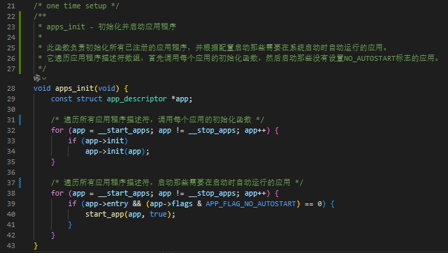 - 初始化应用:遍历所有应用描述符,调用每个应用的 [init]函数。