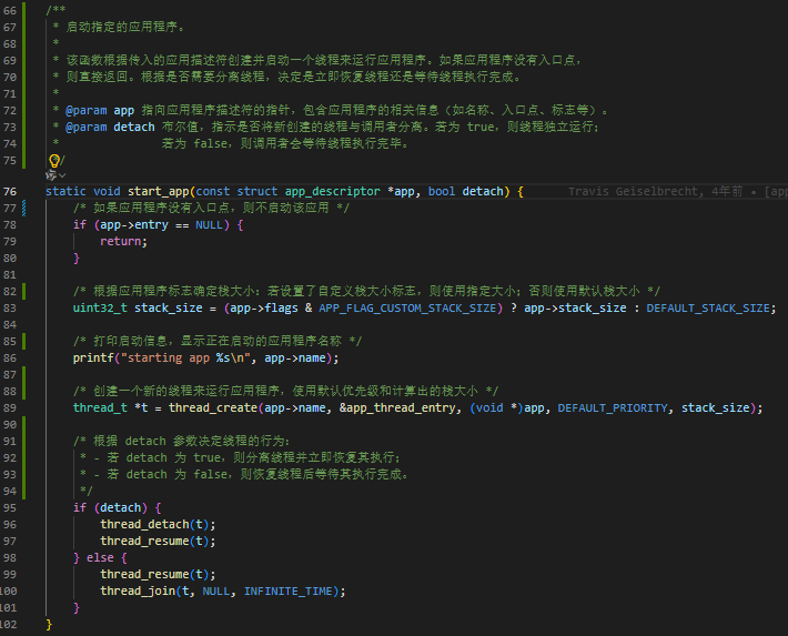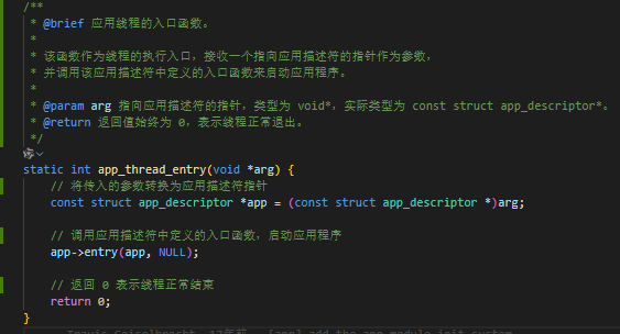 这段代码的功能是初始化并启动应用程序,文件路径如下:app\app.c