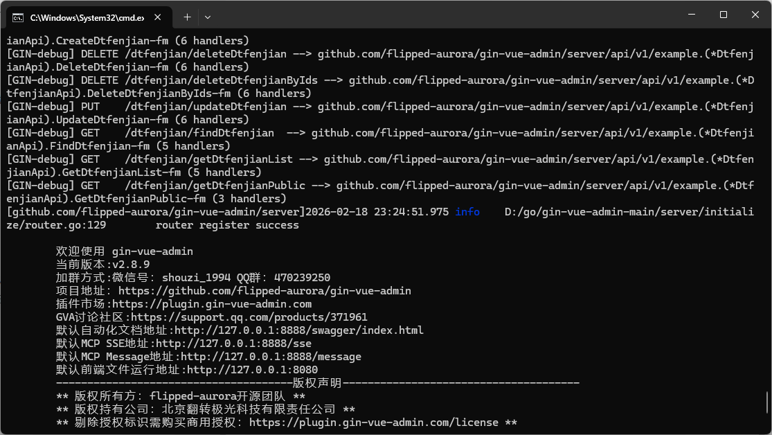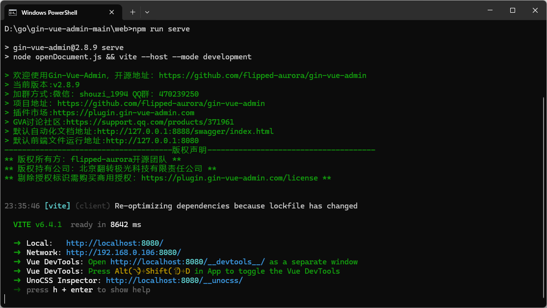 只要按照上述步骤,分别在两个独立的命令行窗口中启动服务,就能成功运行 GVA 框架。