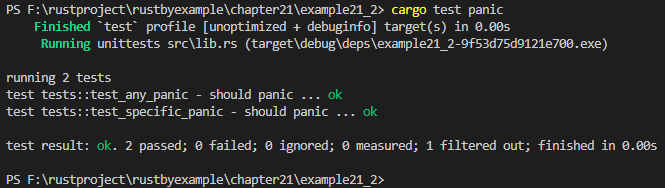 PS F:\rustproject\rustbyexample\chapter21\example21_2> cargo test panic