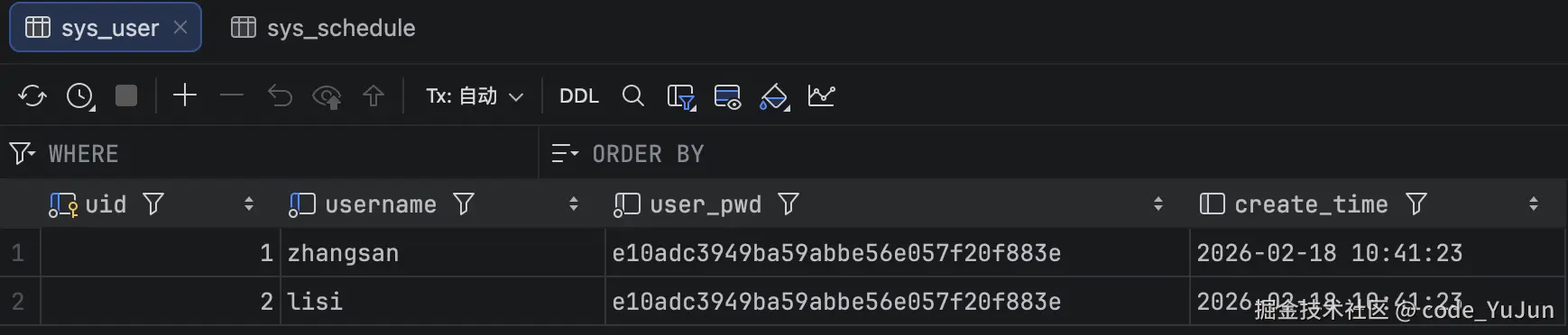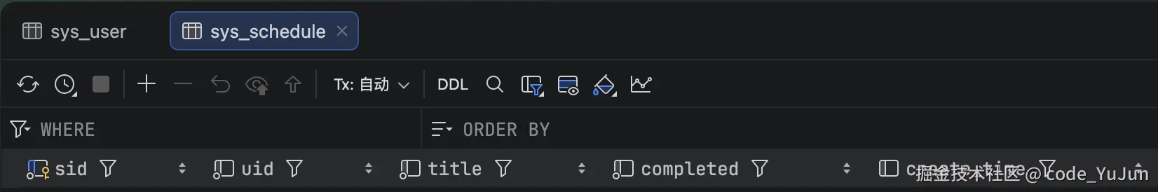 定义了以 sys_user、sys_schedule 表格为核心的业务处理 分别定义 SysScheduleService、SysUserService 接口,并且创建实现类: