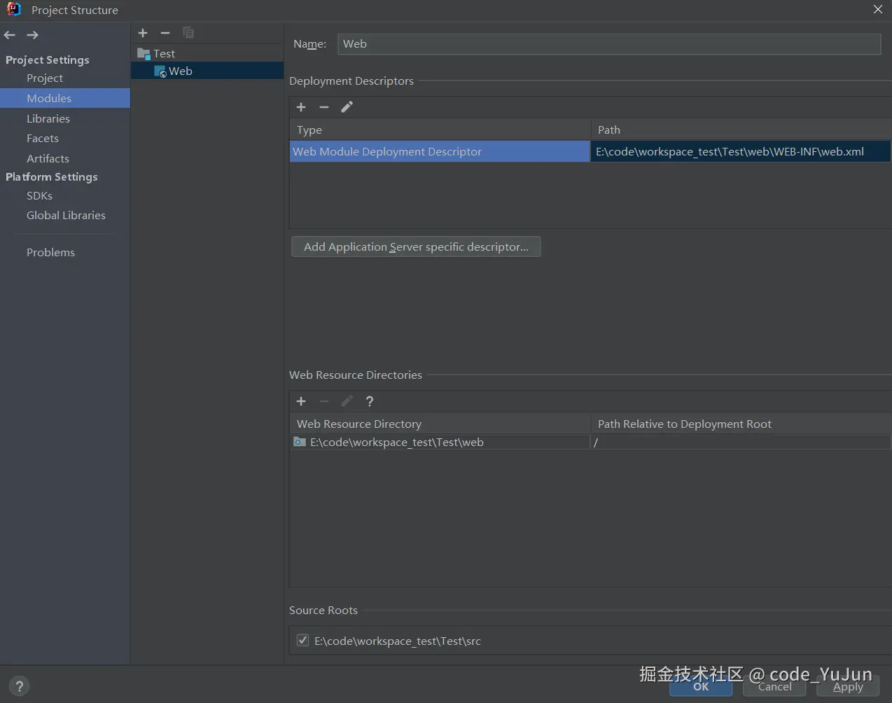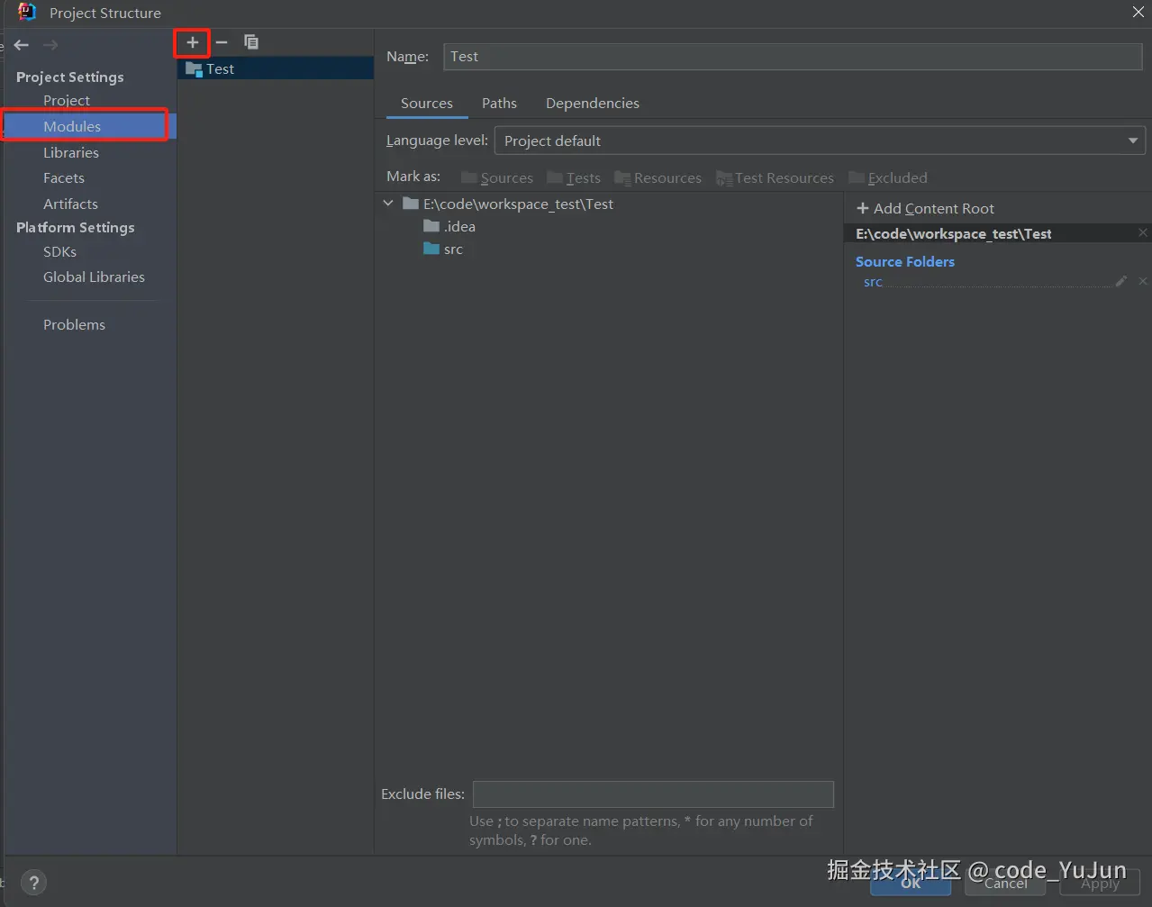 - 在Project Structure 中,左侧选中Modules ,右侧点击 + 号;
