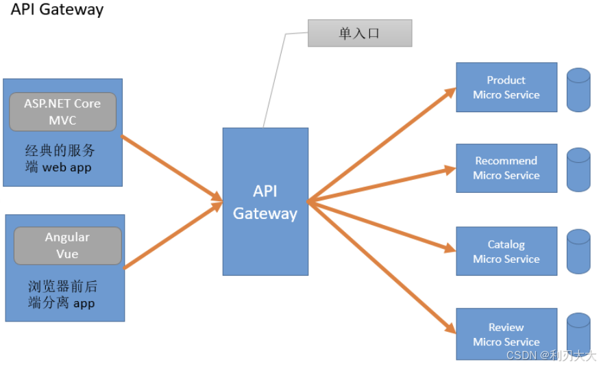 API网关(简称网关)也是一个服务,通常是后端服务的唯一入口。它的定义类似设计模式中的 Facade 模式(门面模式,也称外观模式)。