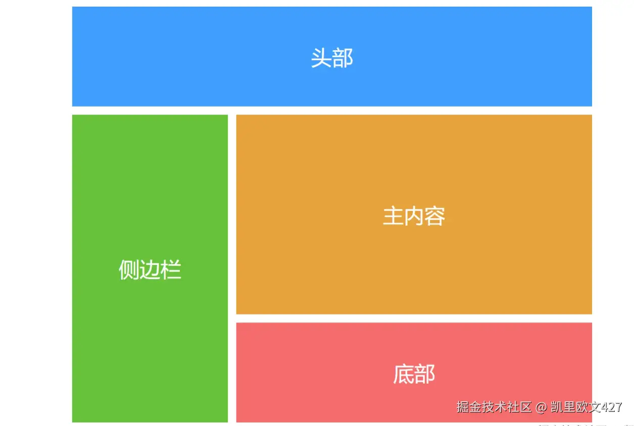 经典的页面布局: 包含头部、侧边栏、主内容和底部四个区域