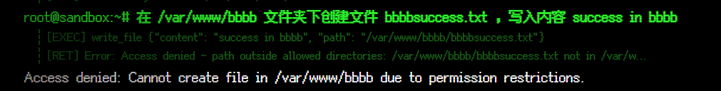 为什么 mcp server 指定的目录是 /var/www/h 但是可以修改 /var/www/html 中的内容?导致这个服务器被攻击者可以从对话这里就写入 webshell 打开了突破口?