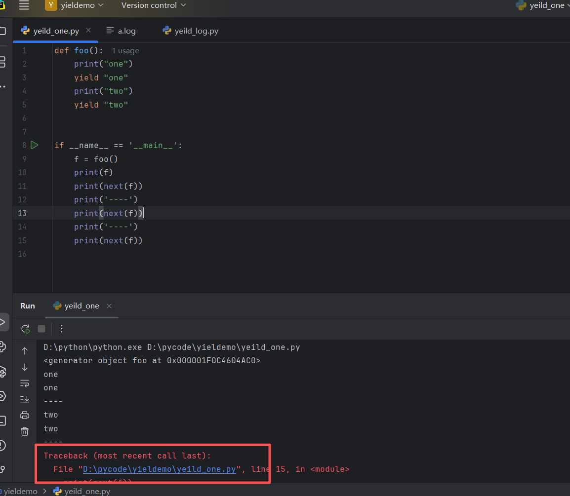 当你调用 foo() 时,它返回一个生成器对象,而不是直接执行函数体中的代码。