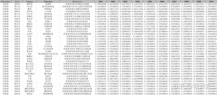 该数据的处理使用到了乡镇行政区划数据,该数据较难获取,我们综合对比后,采用的"学研录"公众号分享的乡镇边界数据!需要说明的是:乡镇行政边界数据没有官方来源,因此本数据的精度有待考量,可能会存在错误,大家在使用的时候自行判断和调整!