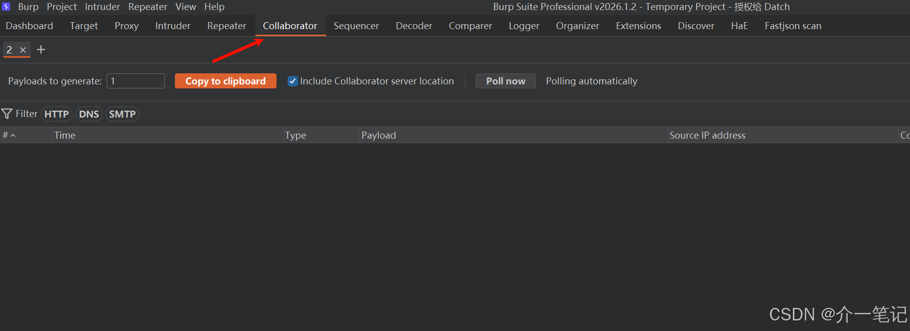 新版本 BurpSuite 专业版的 Collaborator 在 View 工具栏下面