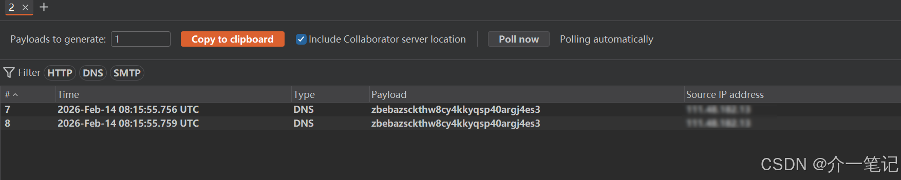 当然,也可以利用 BurpSuite 的 Collaborator 功能自己本地快速验证。
