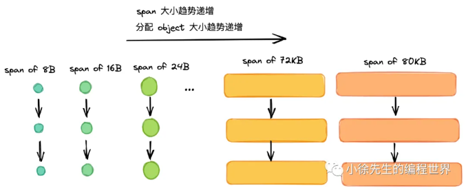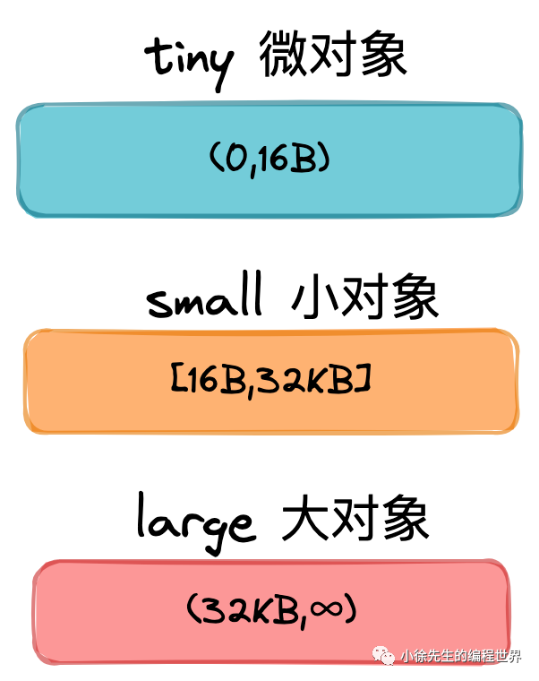 Golang 中,依据 object 的大小,会将其分为下述三类: