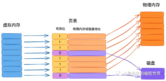 - 页表:这就是那个 "映射表"。操作系统里面会记录着,Page1 对应 物理地内存的Page50