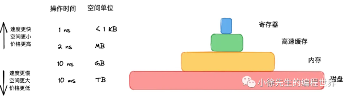 1 ns(纳秒级) ------ 极快,几乎与 CPU 同频。 - 空间单位: