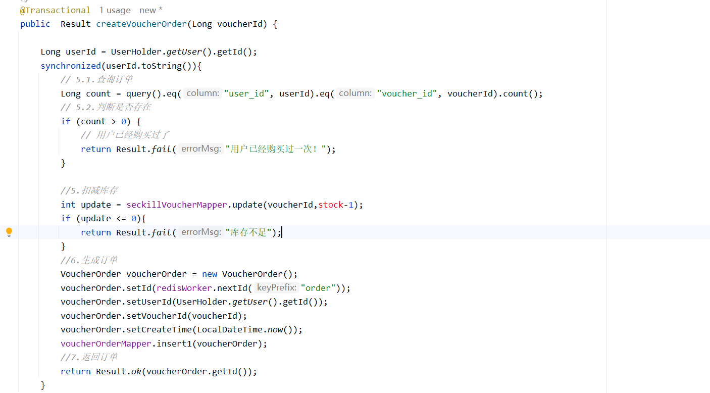 Result voucherOrder = o.createVoucherOrder(voucherId);