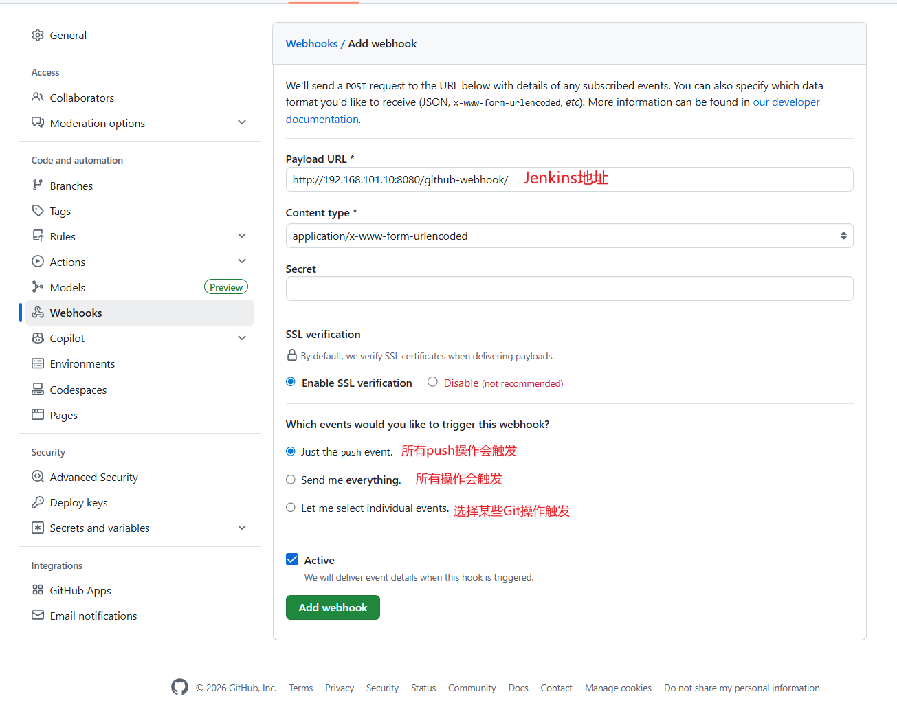 当有符合条件的 Git 操作时,会向设置的 Jenkins 地址发送一个请求。