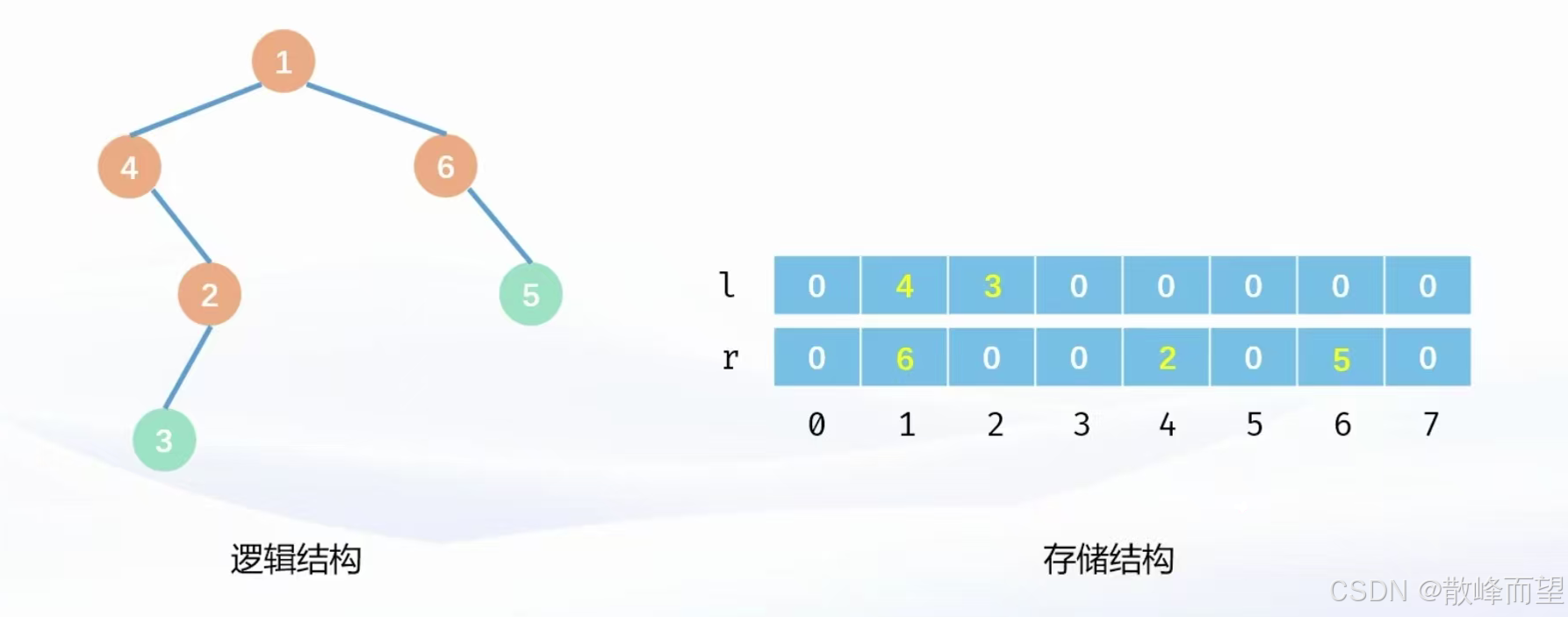r[N],其中 l[i] 表示结点号为 i 的结点的左孩子编号,r[i] 表示结点号为 i 的结点的右孩子编号。这样就可以把二叉树存储起来。