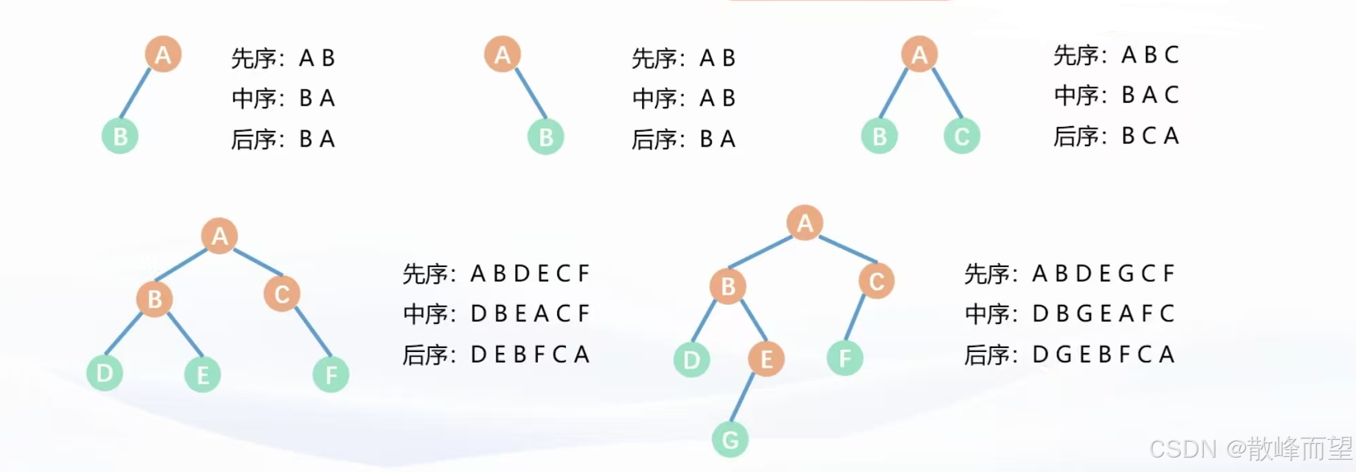 • 先序遍历的顺序为:根 + 左 + 右;