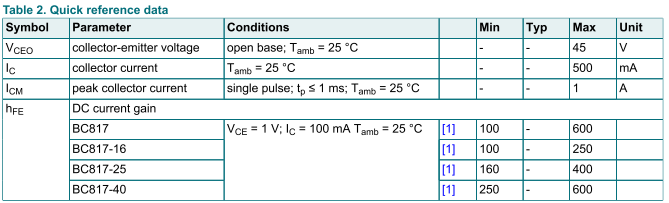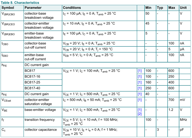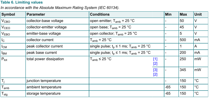 - 数值:最大 45V,表示在该电压以内工作时晶体管不会发生击穿