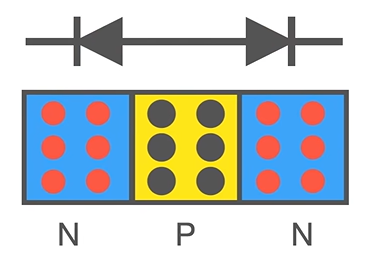 我们将半导体以 NPN 的结构排列,这样他就不会导电: