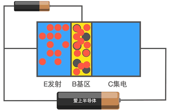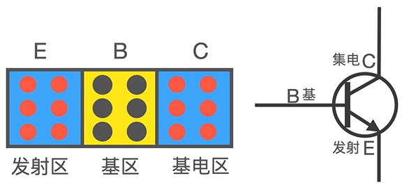 它有三个区域,分别是 P 型半导体,N 型半导体和 P 型半导体,从而形成 PNP 型晶体三极管或者 NPN 型晶体三极管。