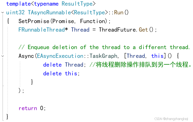 TAsyncRunnable<ResultType>* Runnable = new TAsyncRunnable<ResultType>(MoveTemp(Function), MoveTemp(Promise), ThreadPromise.GetFuture());