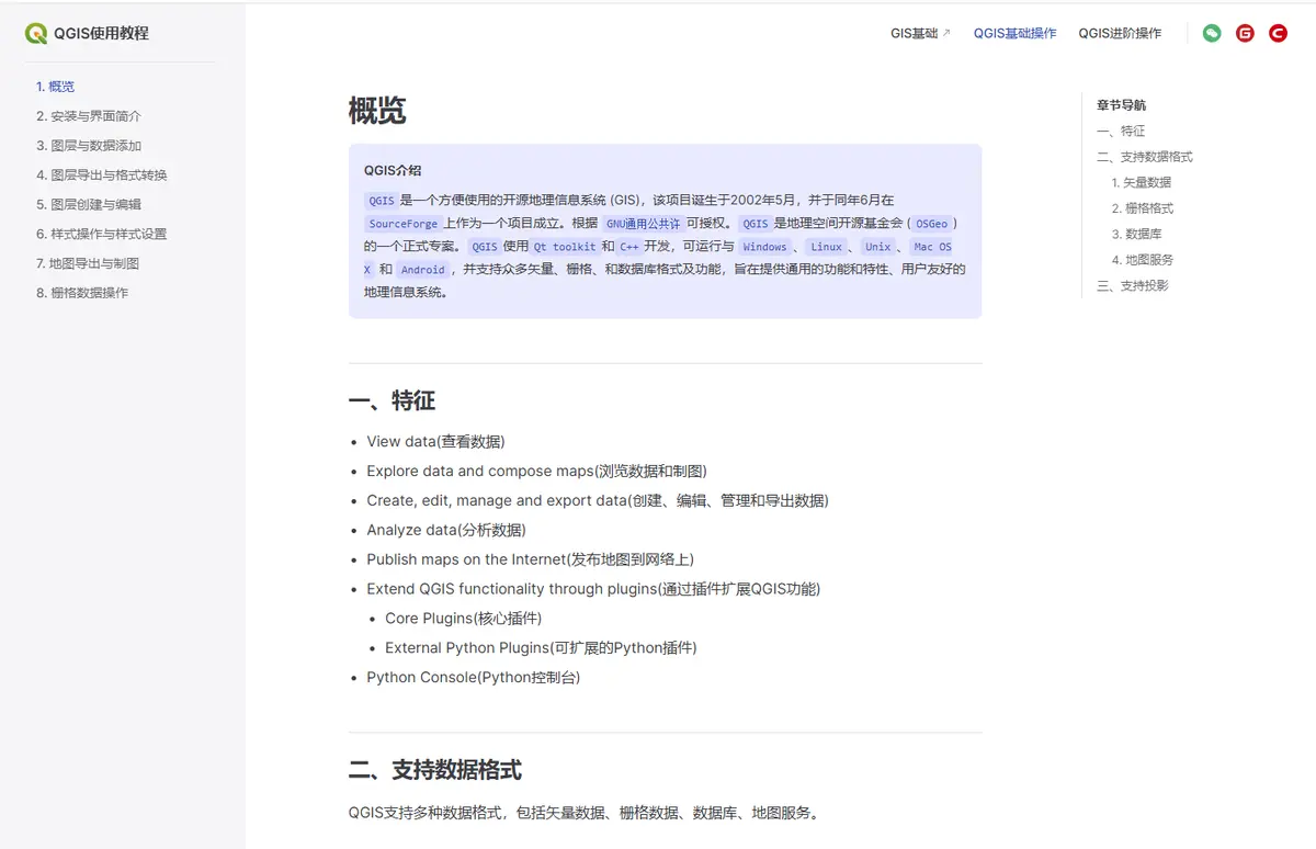QGIS操作教程是一个专注于QGIS地理信息系统使用的保姆级教程网站,由资深GIS从业者倾力打造。该教程系统性地覆盖了QGIS从基础操作到二次开发的完整学习路径,为GIS从业者和学习者提供了一套完整、实用、易懂的学习资源。