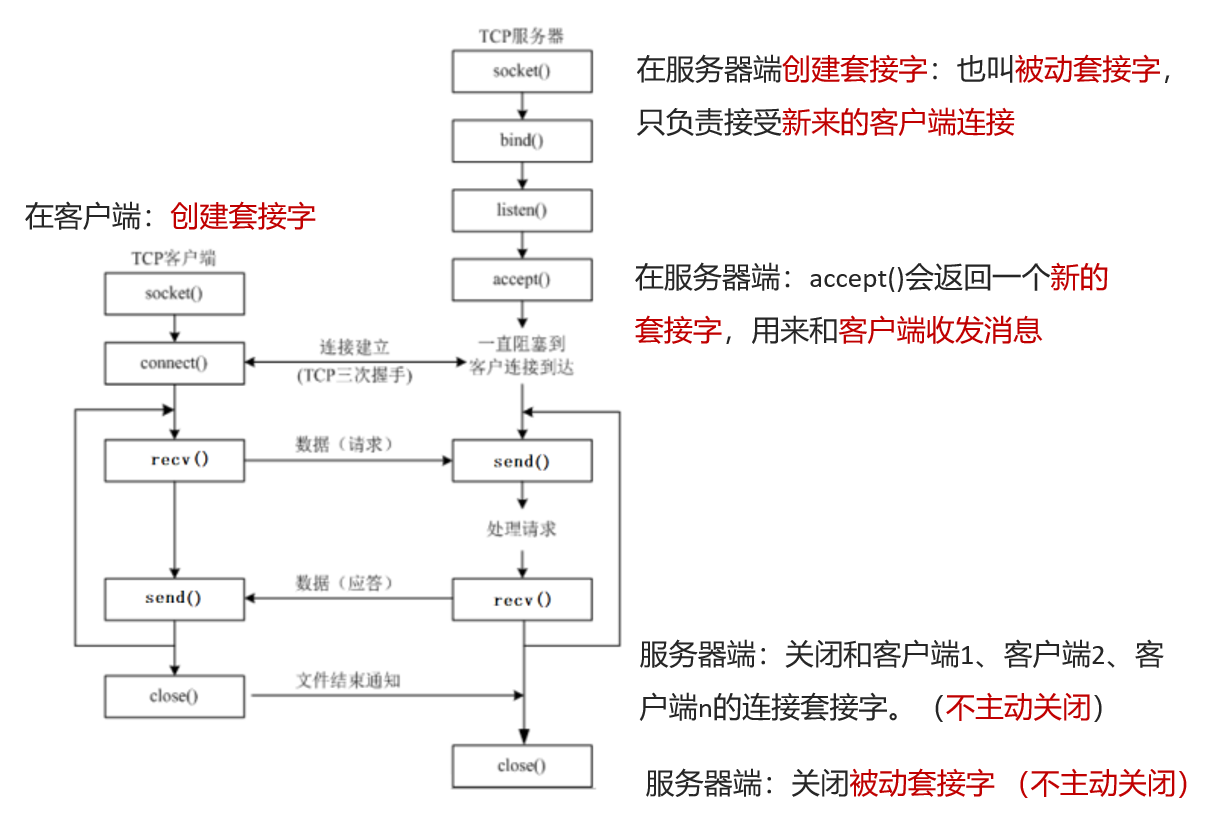 - TCP通信模型相当于生活中的打电话,在通信开始之前,一定要先建立好连接,才能发送数据,通信结束要关闭连接