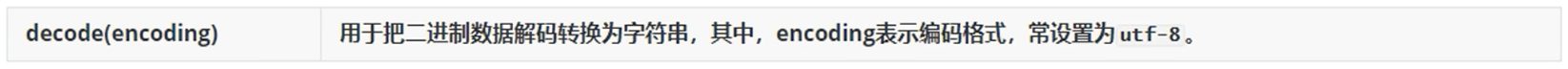 - 当二进制bytes数据转换为字符串str类型时,可使用如下函数: