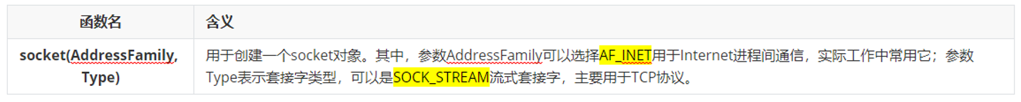 - 要使用socket,则通常要使用到socket模块下的socket类创建socket对象: