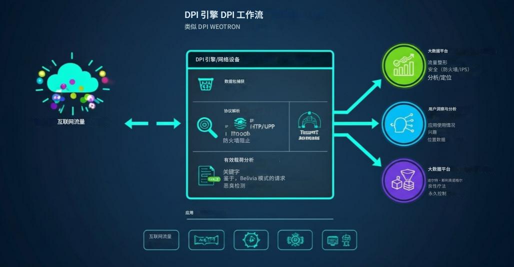 DPI深度数据包检测 监测用户浏览搜索行为 分析在线活动 频繁访问的购物网站或搜索的关键词 等判断其消费偏好