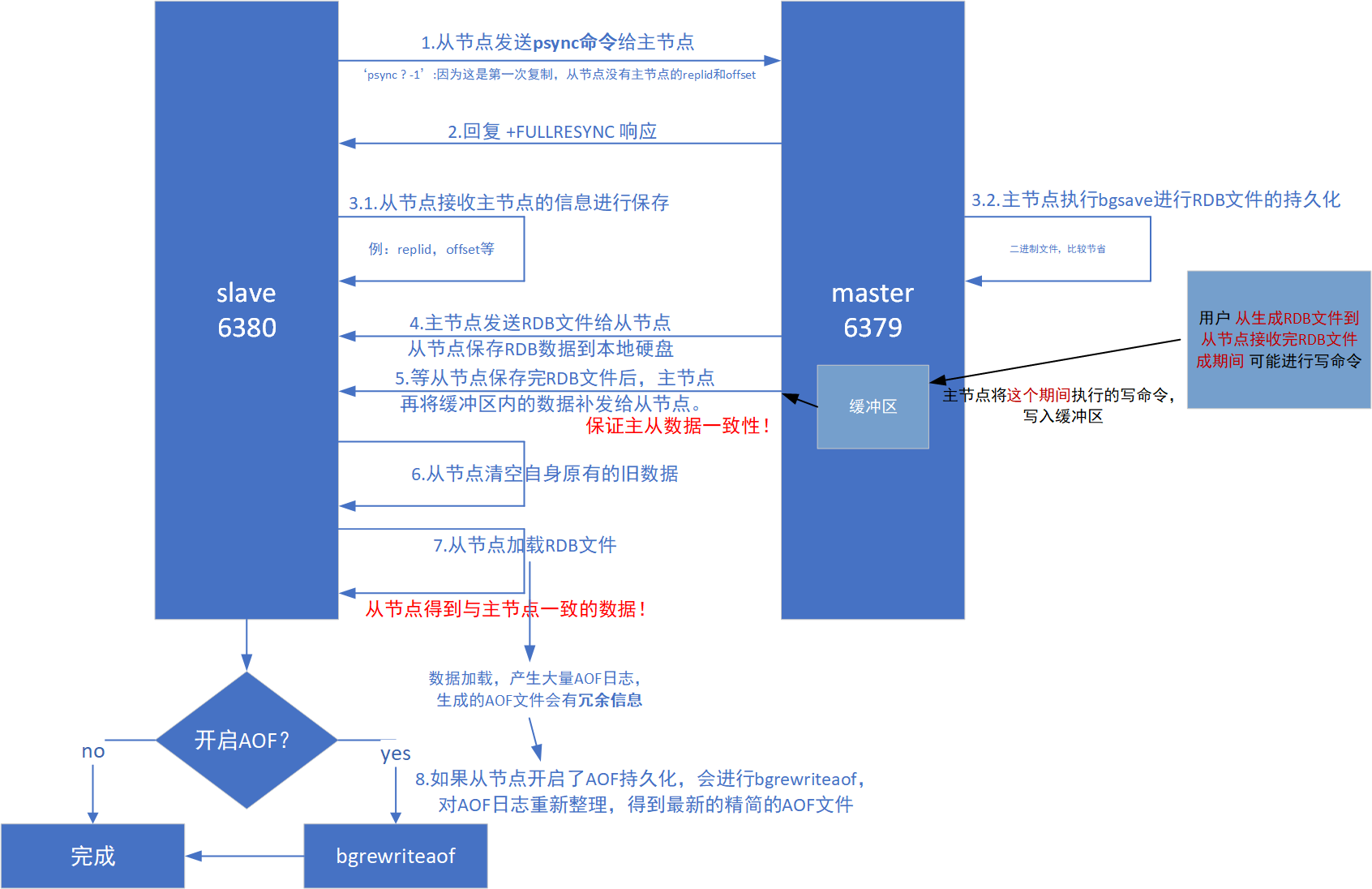 主从第⼀次建⽴复制时必须经历的阶段。