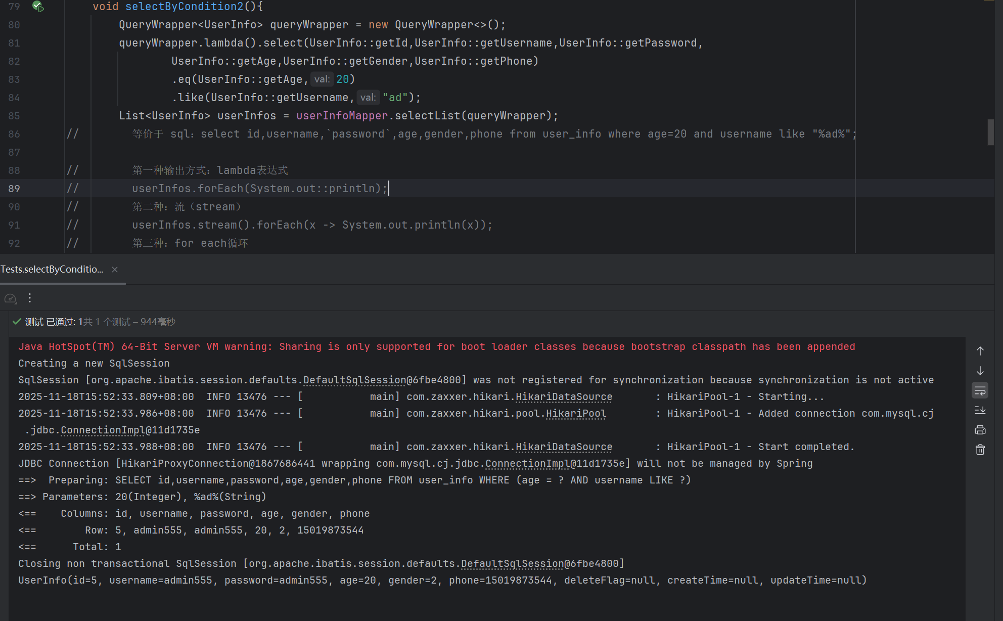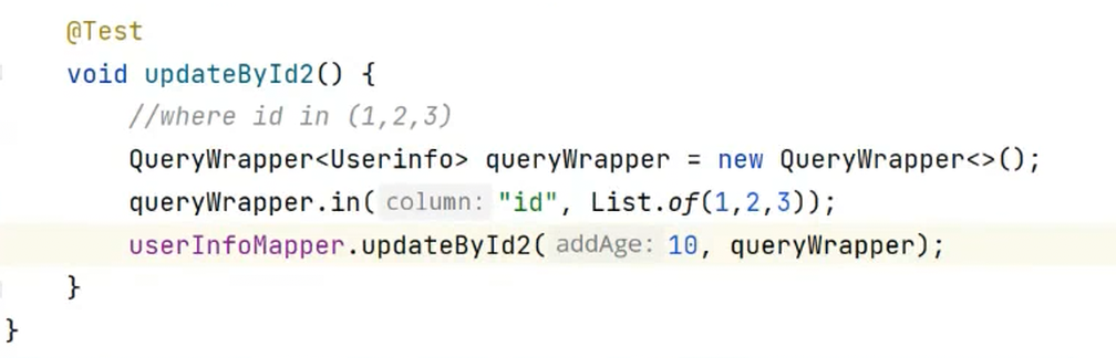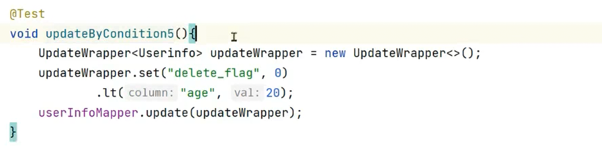 lambda表达式的代码,或者 QueryWrapper和UpdateWrapper,个人开发习惯不同,选择一种进行使用即可。
