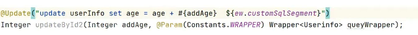 ew,或者使用注解@Param(Constants.WRAPPER)明确指定参数为 Wrapper 对象。 - 使用