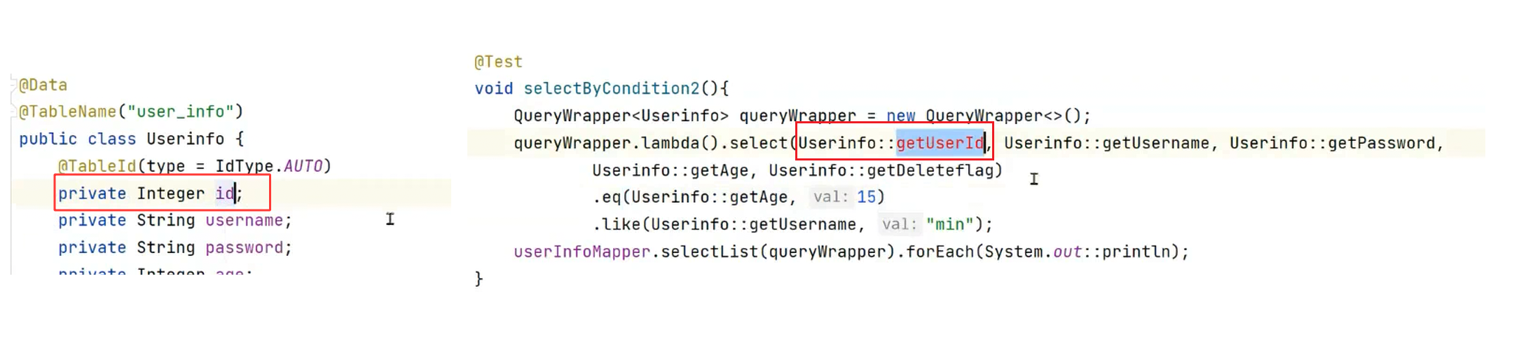 queryWrapper.select(UserInfo::getId,UserInfo::getUsername,UserInfo::getPassword,