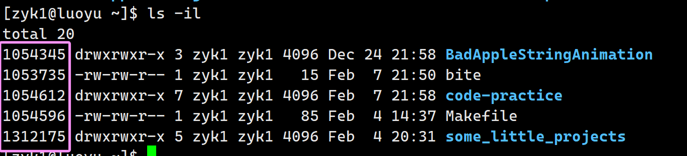 ls命令的-i选项,可以查到文件的inode号: