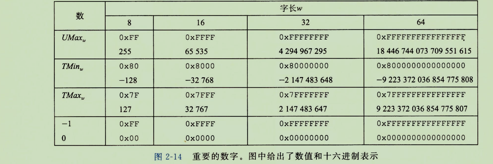 3. 关键数值与位模式(图2-14总结)