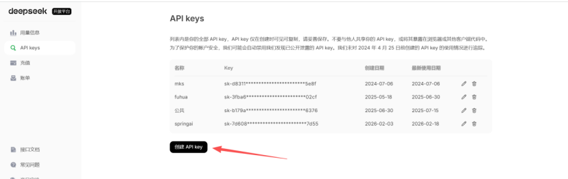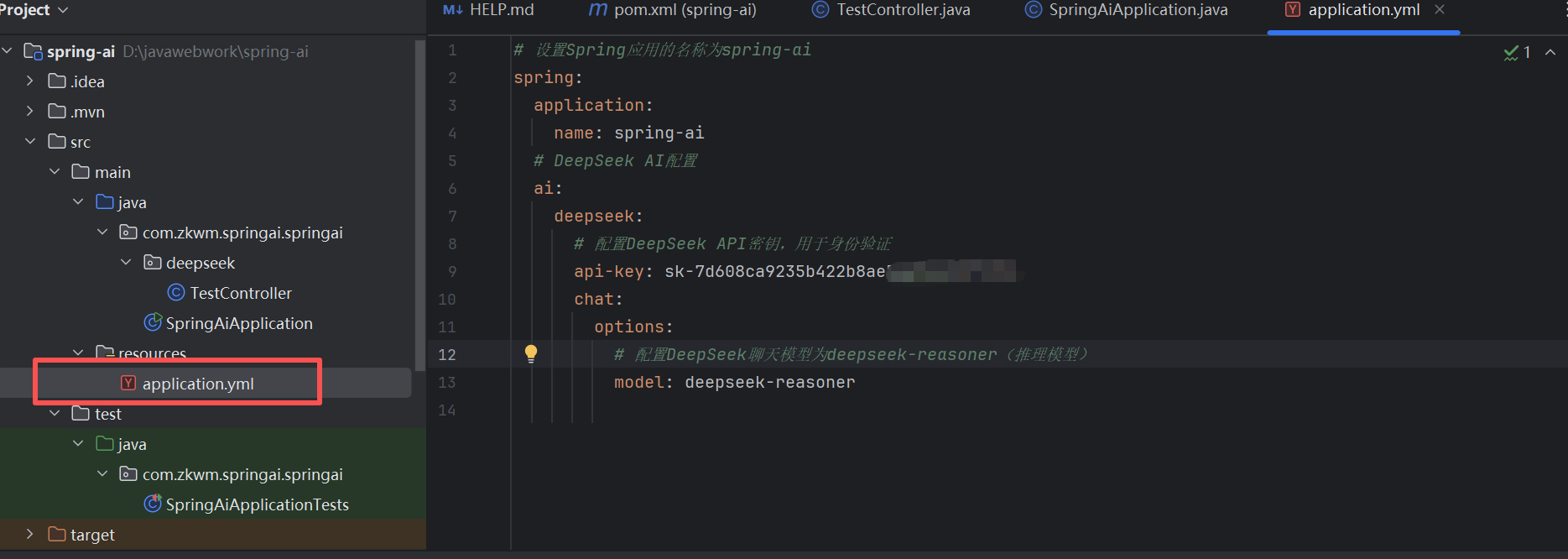 spring.ai.deepseek.api-key这个值填写从官网上申请的apikey。