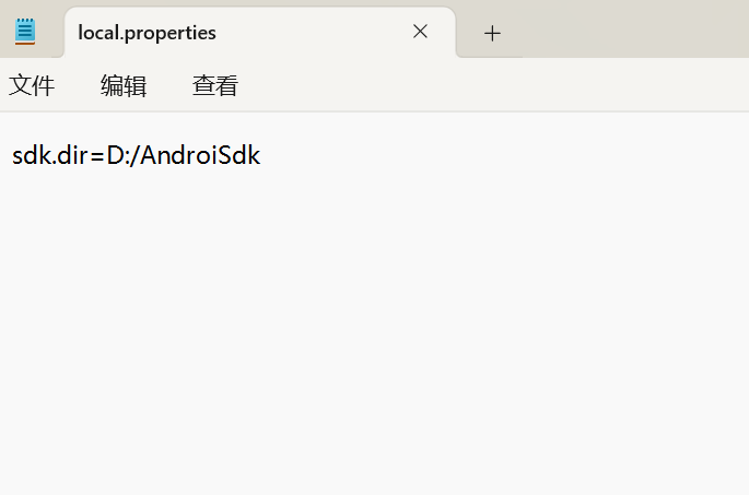 在android 文件夹下创建文件local.properties,记事本打开,输入sdk的路径