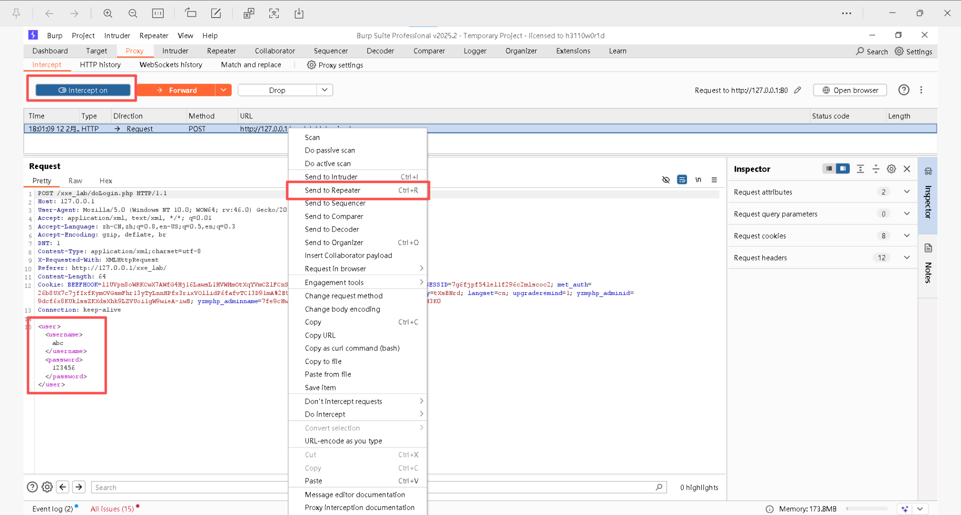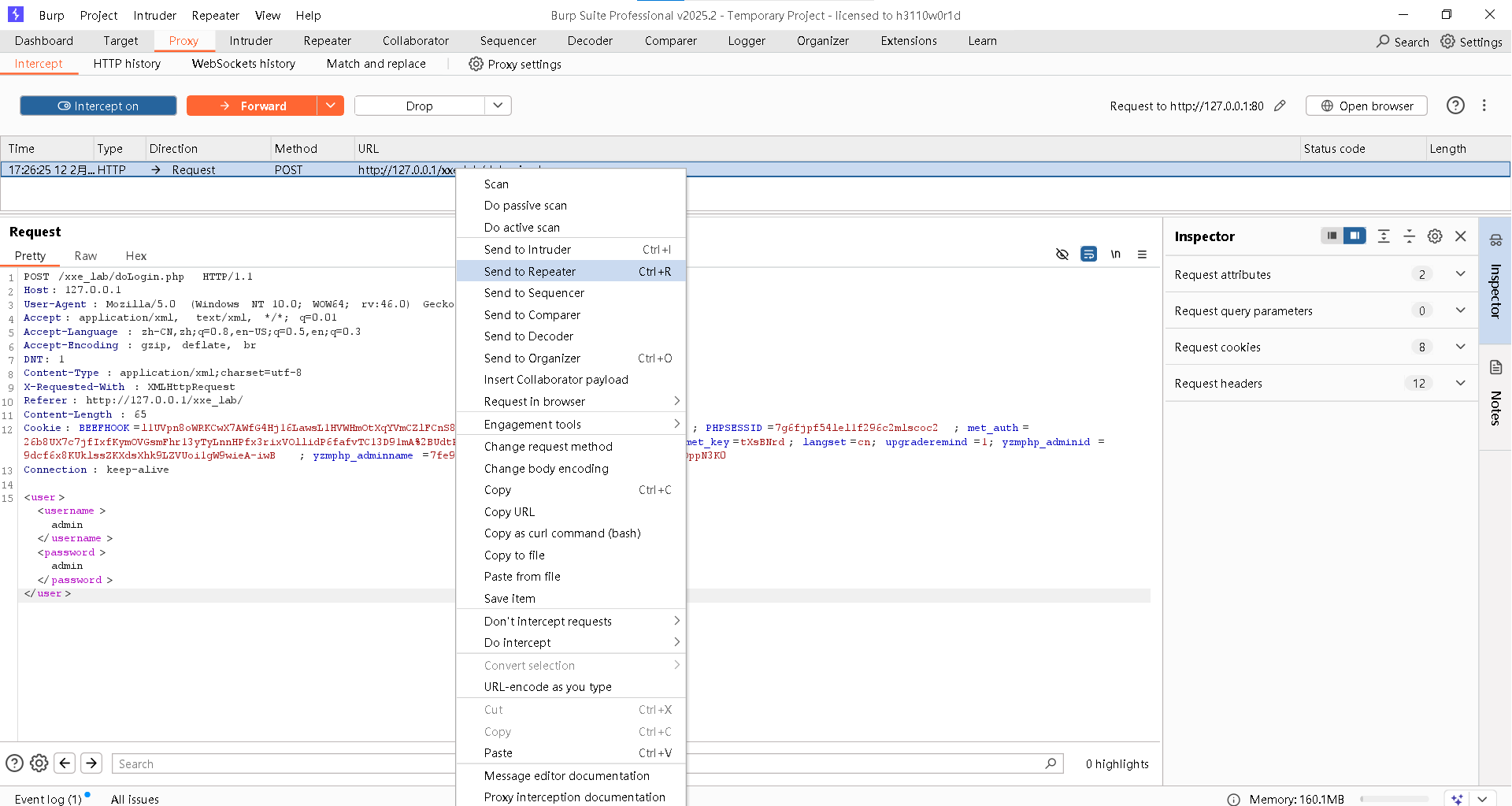 Step1:右击鼠标,选择"Send to Repeater"