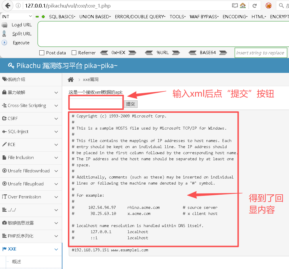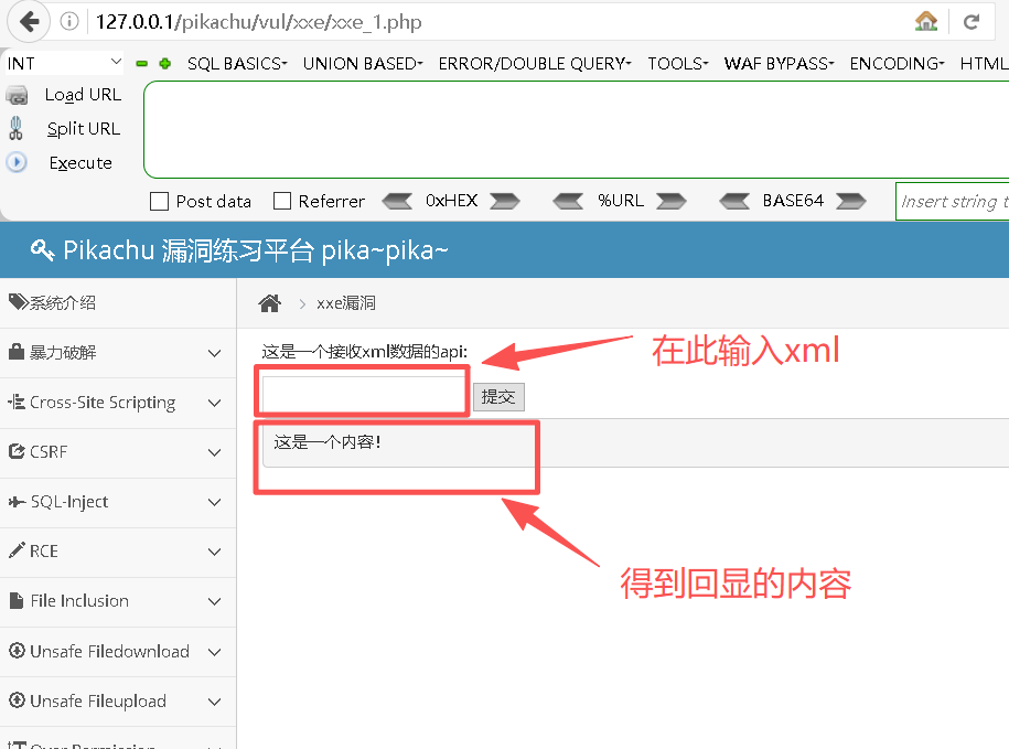 http://127.0.0.1/pikachu/vul/xxe/xxe_1.php