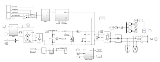 - 能量管理模块:包括发电机模型、PWM控制器、双向斩波器、充放电控制器以及蓄电池模型。