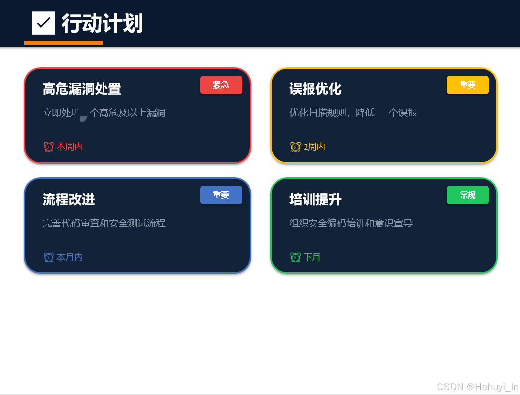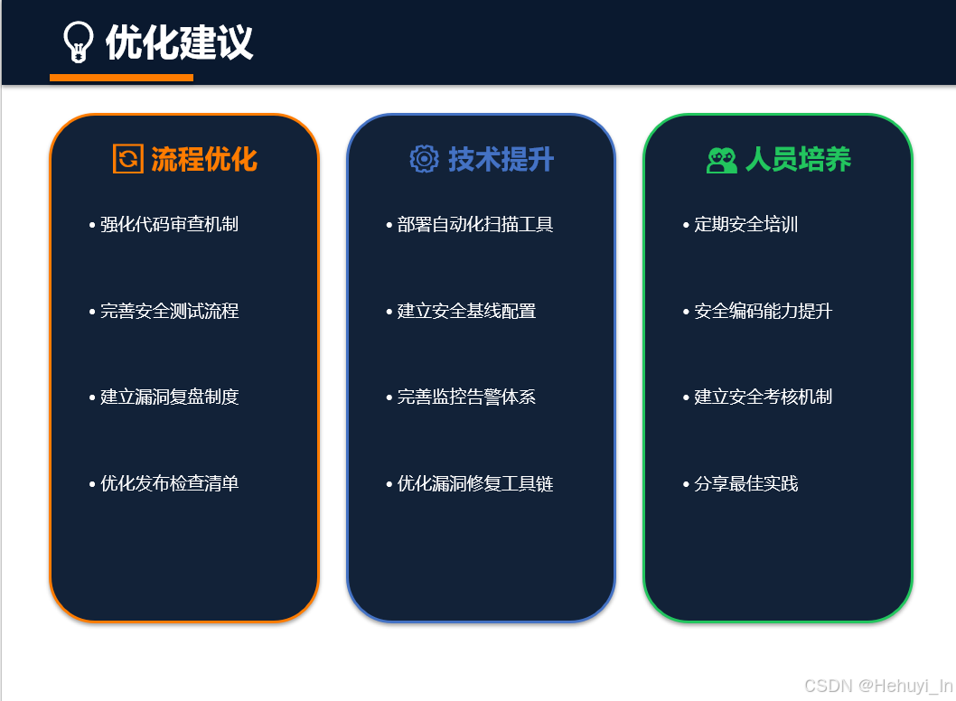 c. 按漏洞大类,将根因整体归类至 组织、流程、技术、人员 四类,总结优化思路及方法(思路可参考 复盘模板-事故复盘_V1.2.pptx 与 漏洞复盘思路.png),请注意不是针对每一个漏洞单来归类,而是针对整体分析优化,输出待办任务定期跟进